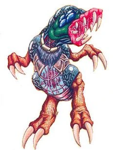The Gamma Metroids are a grown version of the Alpha Metroid. The limbs are now longer and more muscular, the carapace is thicker and bigger, and the horns are stronger and thicker. Another pair of eyes is added to the head of the Metroid. Gamma Metroids also have gained the ability to generate bolts of energy as a means of attack.